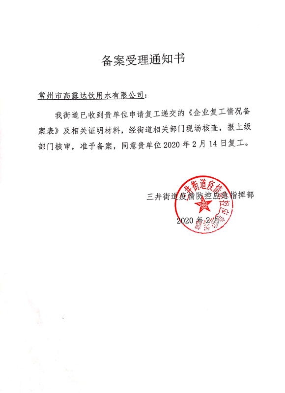 11号上午,新北区市场监督管理局检查人员来到常州市高露达饮用水有限公司,企业年初二就开始逐步复工,目前上岗人员已达51名,从生产到配送,每个环节都把防疫作为头等大事。