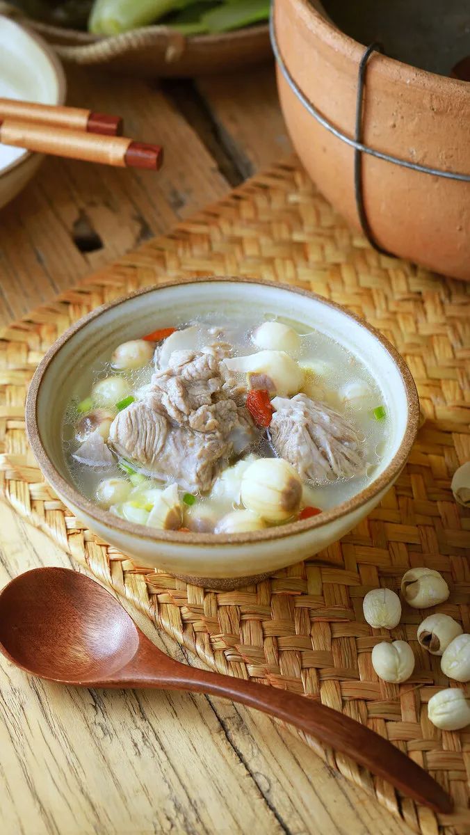 猪排骨滋阴润燥、益精补血;而莲子可清心、除胃寒,其中所含的棉子糖,更是老少皆宜的滋补品。